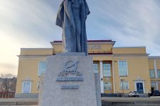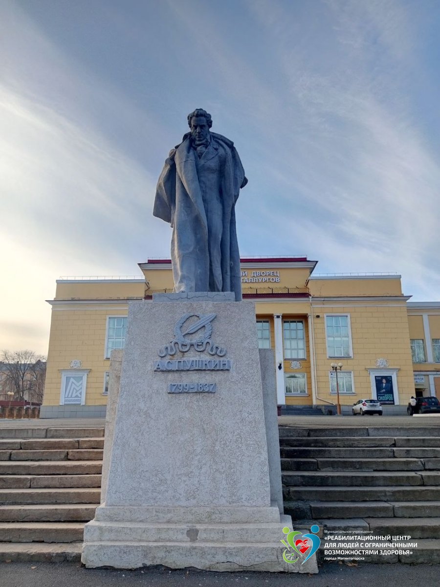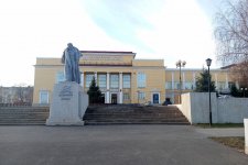 Перед главным фасадом здания воздвигнут памятник А. С. Пушкину (скульптор С. Д. Меркулов)