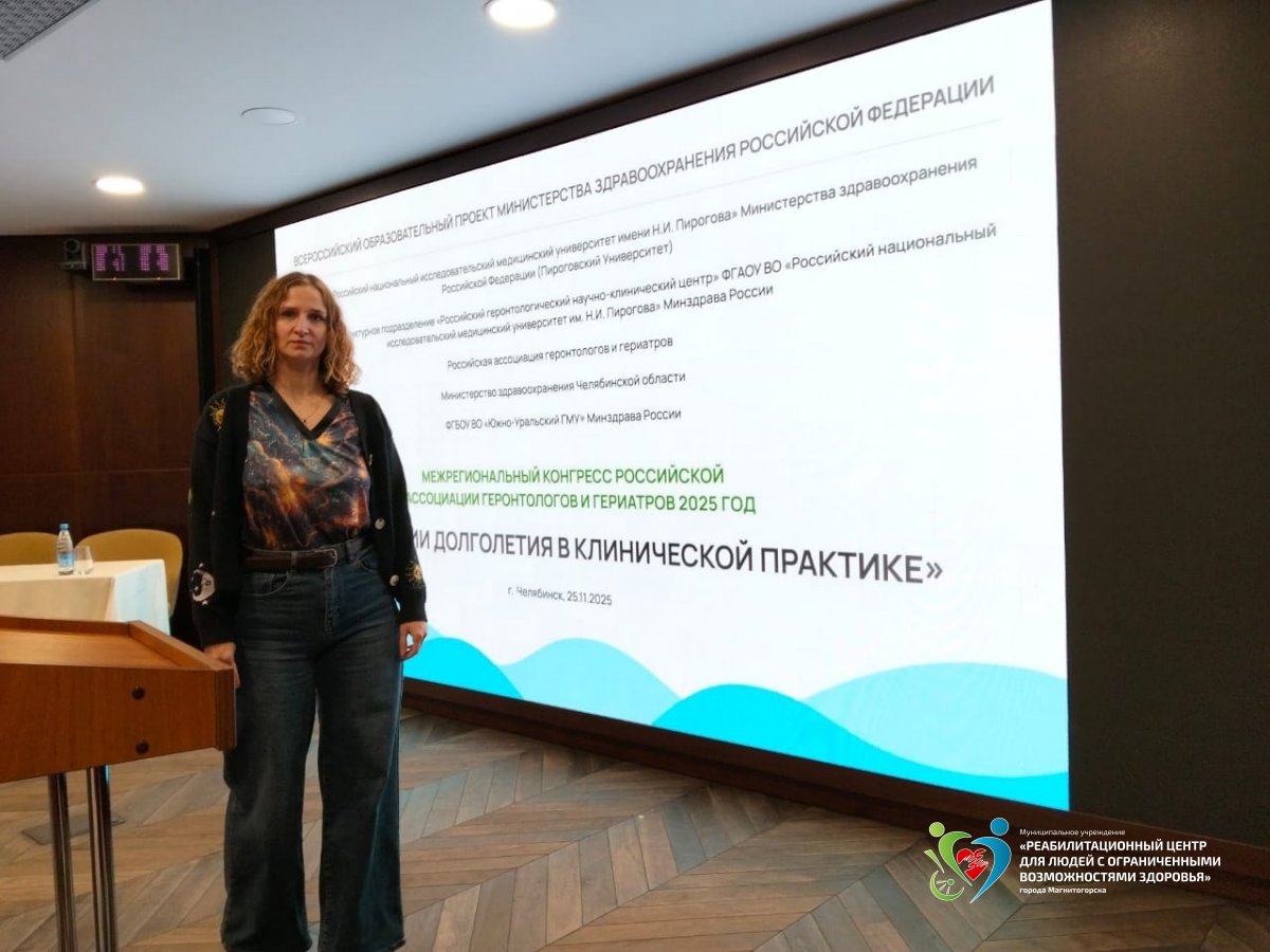 25 ноября медицинская сестра по лечебной физкультуре Устюжанина Мария и инструктор по адаптивной физической культуре Сибилева Надежда муниципального учреждения «Реабилитационный центр для людей с ограниченными возможностями здоровья» города Магнитогорска приняли участие в Межрегиональном конгрессе Российской ассоциации геронтологов и гериатров (РАГГ) «Технологии долголетия в клинической практике», который состоялся в городе Челябинске.