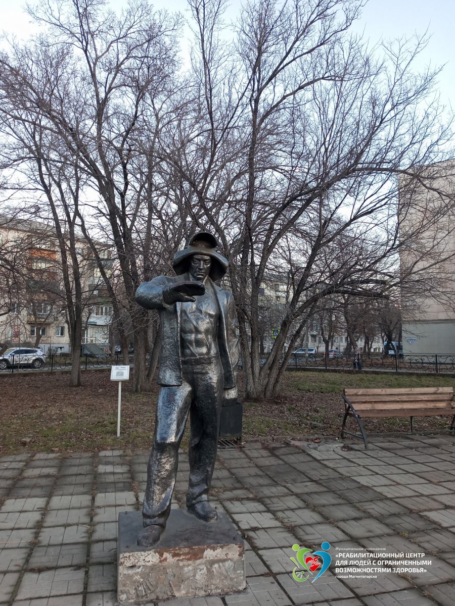 Изображает собирательный образ доменщика (горнового) — работника доменного цеха Магнитогорского металлургического комбината.