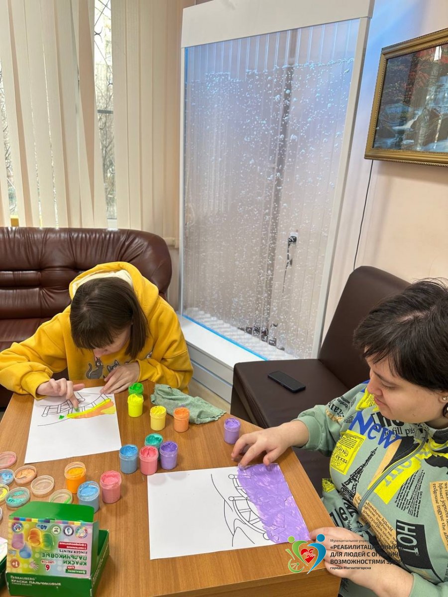 В нашем Учреждении прошло мероприятие с психологом Козловой Валерией, где получатели социальных услуг через рисунок исследовали свои мечты и планы. Работали пальчиковыми красками, которые сами по себе обладают терапевтическим эффектом: помогают расслабиться, снять напряжение, выразить чувства через движение и цвет.