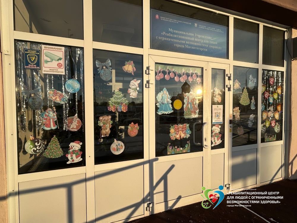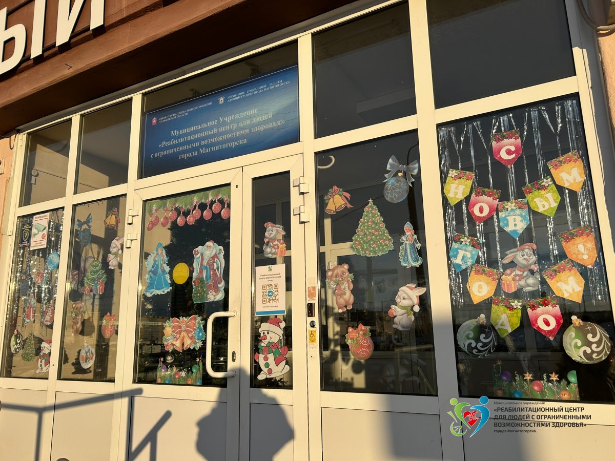 В муниципальном учреждении «Реабилитационный центр для людей с ограниченными возможностями здоровья» города Магнитогорска создана праздничная атмосфера в преддверии новогодних и рождественских праздников. Сотрудники учреждения оформили входную группу здания, украсив её тематическими декоративными элементами, гирляндами и новогодними композициями.