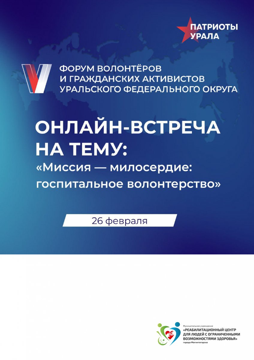 Открыта регистрация на онлайн-встречу форума "Патриоты Урала" на тему госпитального волонтерства.