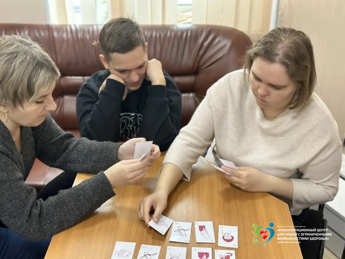 В муниципальном учреждении «Реабилитационный центр для людей с ограниченными возможностями здоровья» города Магнитогорска прошел психологический тренинг «Угадай эмоцию», посвящённый теме эмоций и чувств. Участники учились распознавать эмоции по мимике и выражению лица с помощью карточек из методики «Азбука настроения».